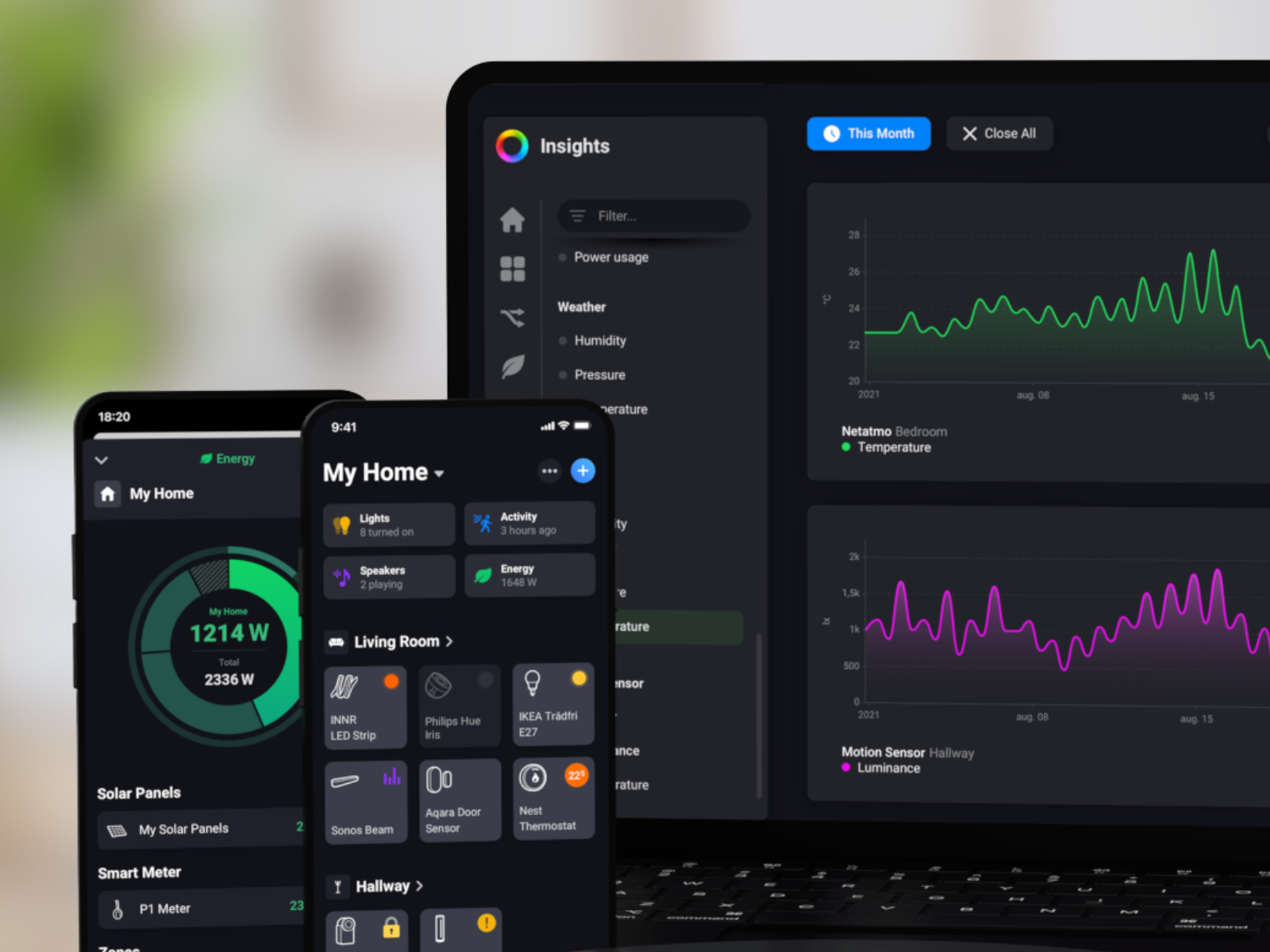 Homey’s built-in dashboards and the Energy view give you a live snapshot of your home, so you can see what is on, how much power devices are using, and where savings are hiding. Pin your favorite rooms and devices, track trends over hours, days, or weeks, and spot energy hogs before they inflate your bill. It is not just control, it is clarity that helps you make better choices every day.