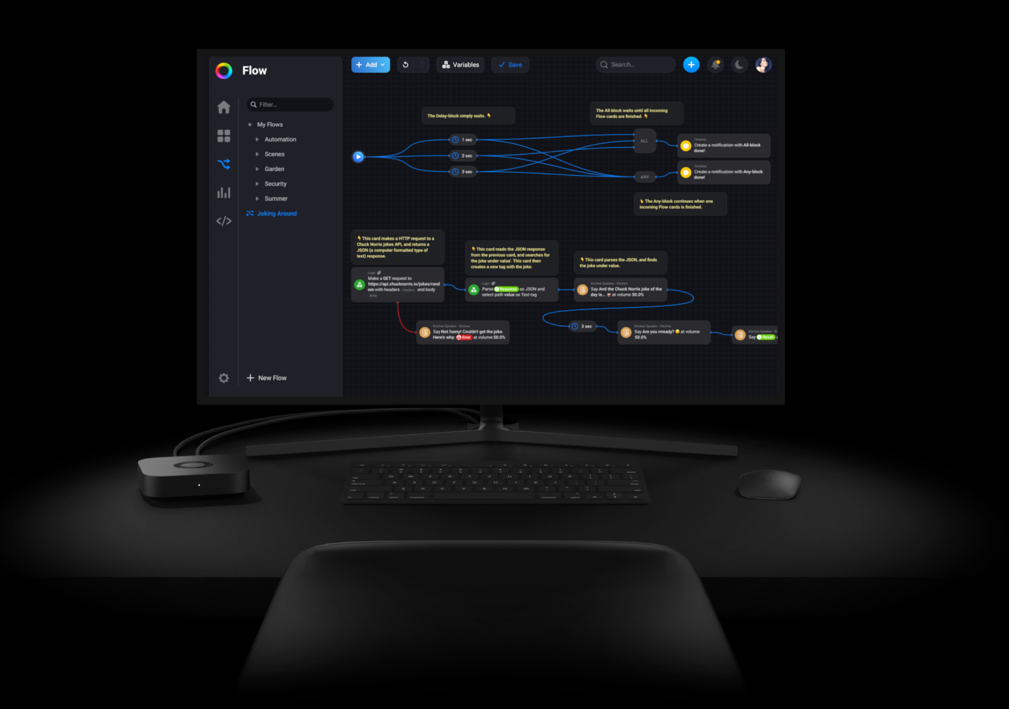 - Advanced Flow: Build more complex routines with conditions, timing, and branches, still visually, still approachable.